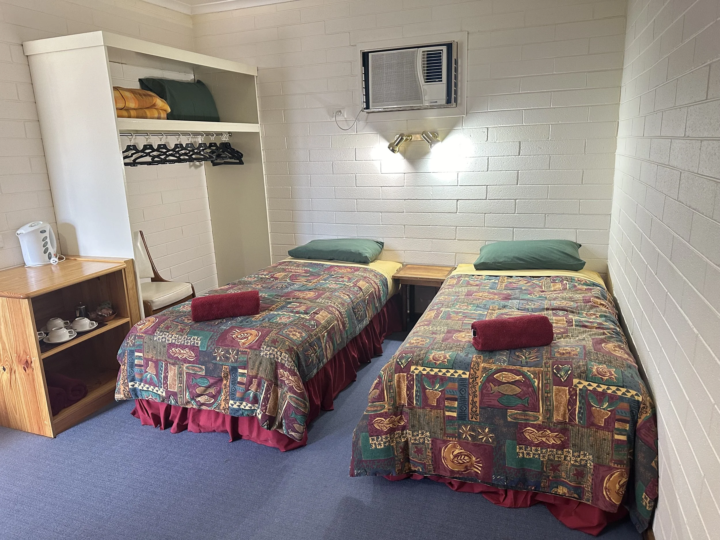 The queen room comfortably accommodates 2 people and features a cozy queen bed, a private ensuite bathroom, a spacious wardrobe, and reverse cycle heating and cooling for year-round comfort. Additional amenities include a dining table with chairs, a comfortable lounge area, a mini fridge, coffee making facilities, a toaster, a microwave, and a television. Weekly rates are also available upon enquiry for extended stays.